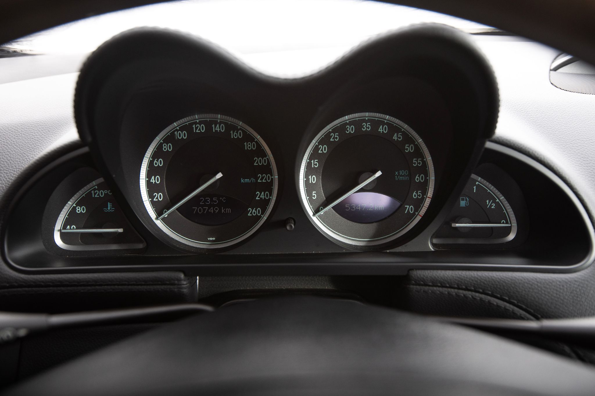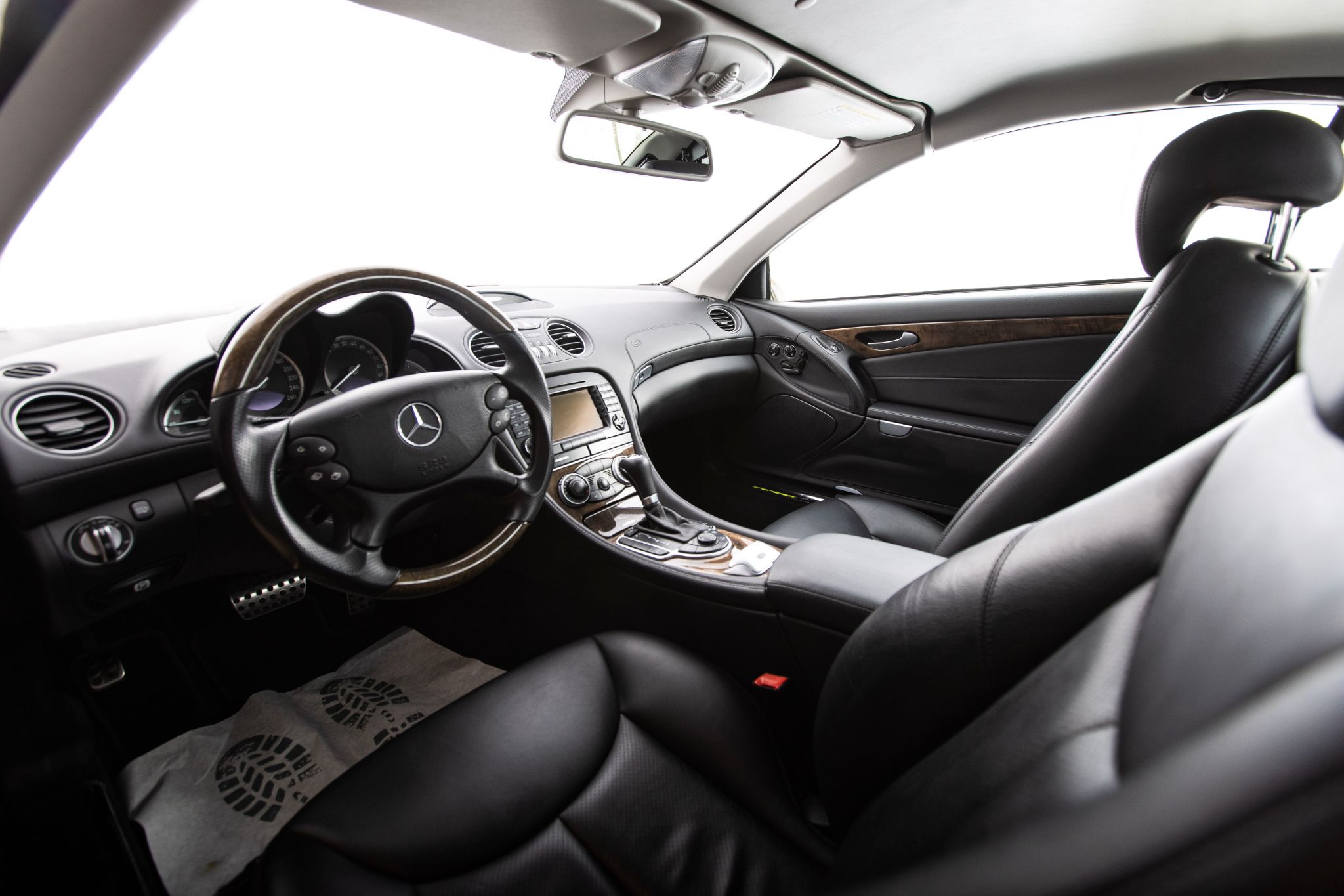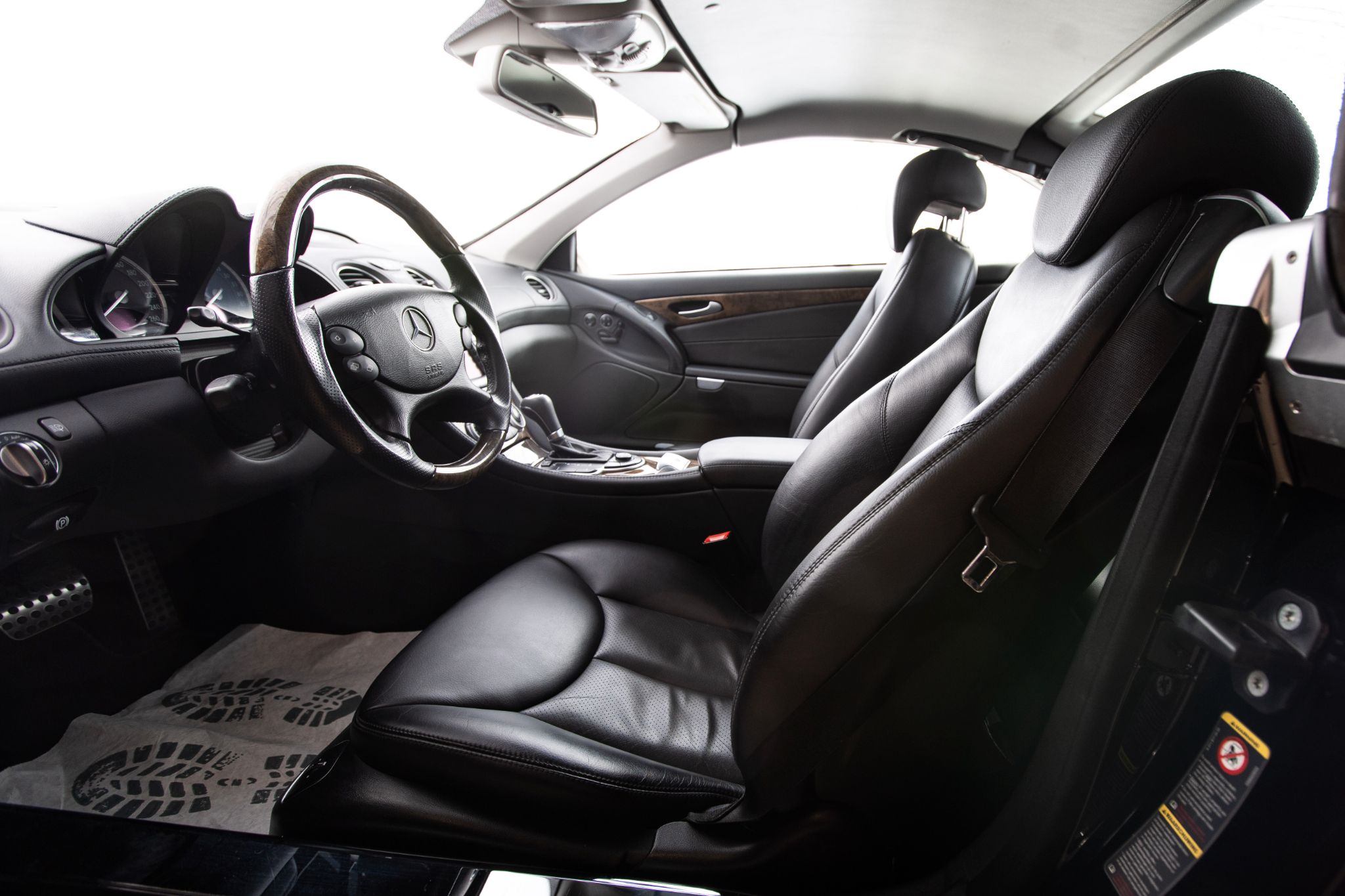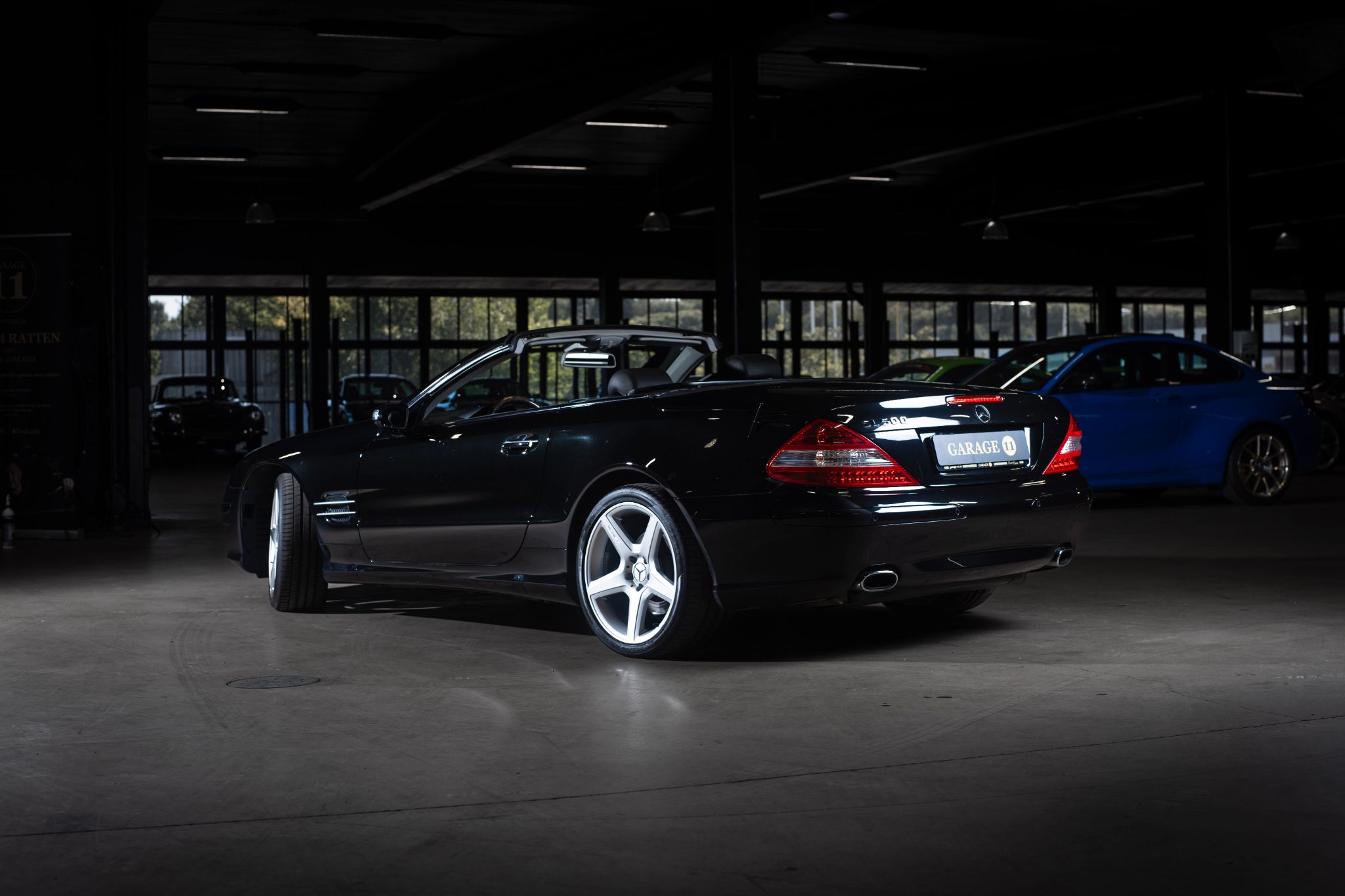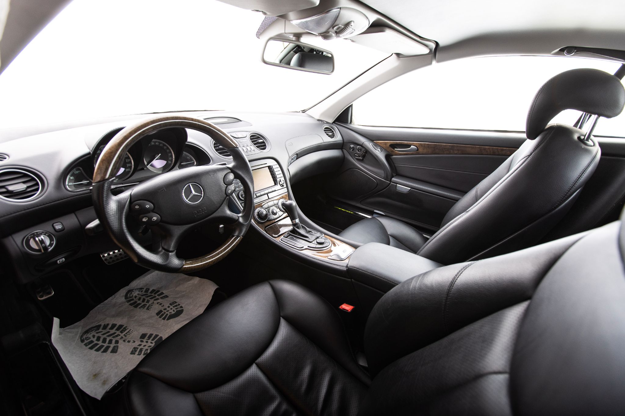 Exteriören är klassiskt svart metallic och vilar på original 18” fälgar i fem-ekrad design, en kombination som ger bilen en tidlös men självklar pondus. Fronten med sina dubbla strålkastare och kromade grill är ikonisk för tiden och gör att bilen känns lika självklar på strandpromenaden i Nice som på E4:an en sommardag.
