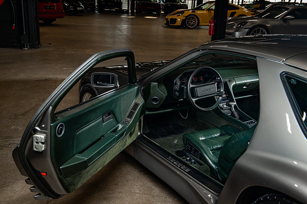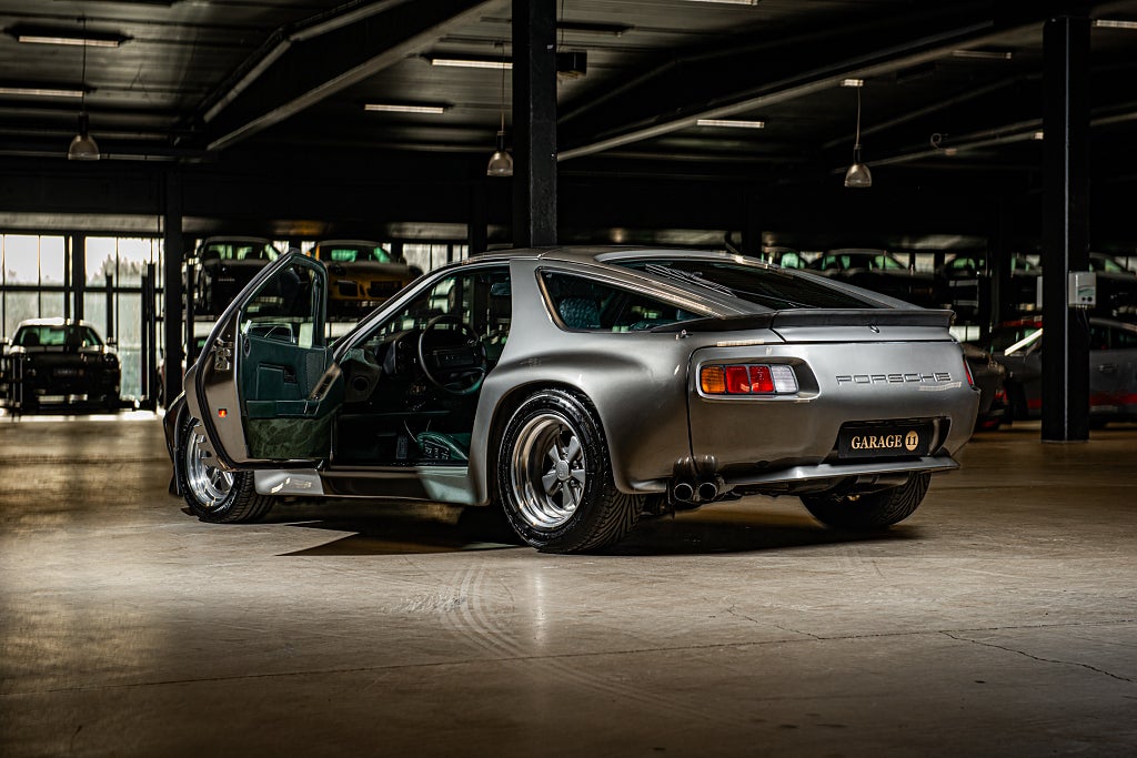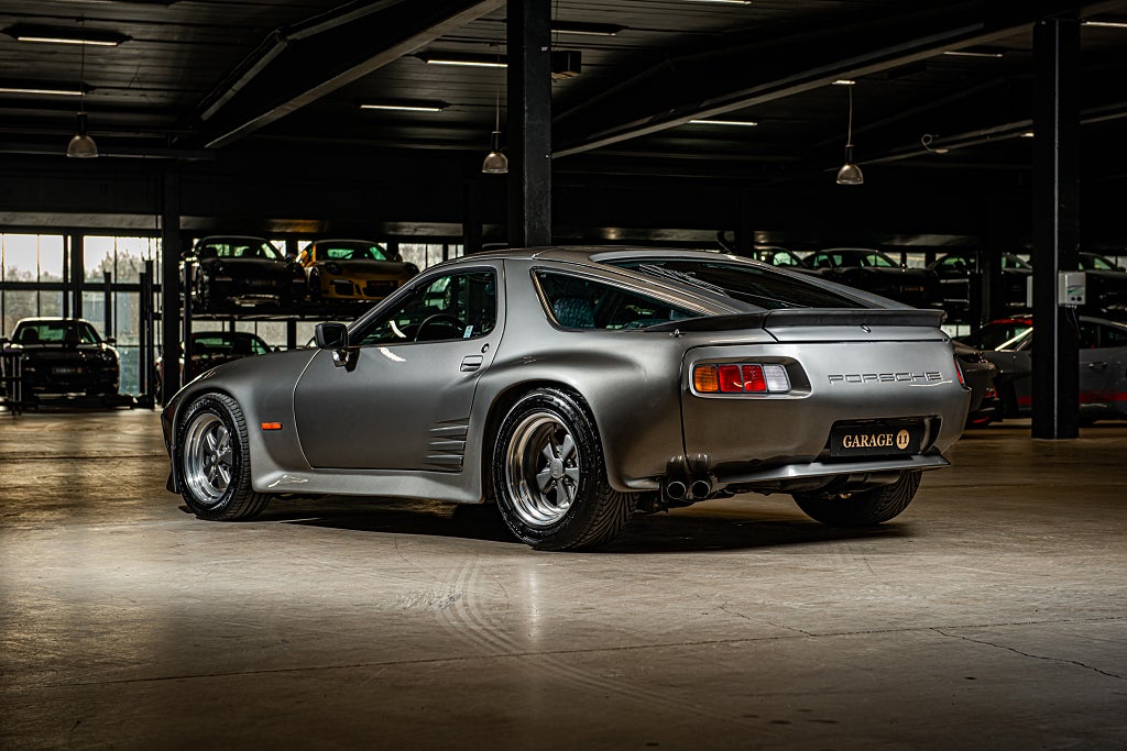 När Porsche lanserade 928 i slutet av 70-talet så var det som en banbrytande GT vagn som i stort helt saknade motstycke i marknaden. Stor. Bred och med en fantastisk V8 under huven så erbjöd den nya bilen en helt omatchad körupplevelse väl paketerad i något som i tid såg ut som ett rymdskepp. Och det måste väl ändå vara så att det är en bil som inte kunde se vildare ut? eller? Nja. Inte alla som håller med visar det sig. Året är 1982 och i ett litet pittoreskt samhälle vid namn 'Utting am Ammersee' strax väster om München startar ett litet med ack så betydelsefullt företag upp. Företagets grundare Vittorio sätter sitt efternamn på bolaget och Strosek är grundat. Strosek tillsammans med en rad liknande företag så som exempelvis Koenig fokuserar tidigt på att erbjuda uppgraderings paket till just Porsche 928. Både mekaniskt men framför allt visuellt. Och visuellt blev det. På bästa tänkbara 80-tals sätt. Stroseks kit erbjöds i tre nivåer till 928. Denna bil bär nivå 3 vilket i praktiken innebär en ganska så påtaglig breddning både över fram och bakaxel. Nosen har fått en mer framtonad splitter och en ny uppsättning lampor. Sidoprofilen domineras av sina tidstypiska 'side-strakes' som på tidigt 80-tal var ett populärt sätt att modifiera en bils utseende och som idag på ett underbart sätt poängterar bilens era. Den breda karossen vilar idag på en uppsättning special anpassade Fuchs fälgar som är skodda i tidsenliga Michelin däck för att bibehålla looken utan att kompromissa på prestandan. Bakpartiet känns i stort igen från bilen som står till grund med sitt distinkta avgassystem som går tvärt ut baktill på förarsidan. Det är liksom som att hjärnan på något sätt kopplar av efter man har tagit in helheten. Ungefär som om hjärnan hinner normalisera det abnormala. Det är ungefär i denna stund man gör bäst i att öppna dörren för att få nästa rus. Ibland så tas man av en detalj i inredningen. Kanske en insteglist eller något liknande. Inte i detta fallet. När man öppnar förardörren så slås man av en helläder inredning i mörkgrönt. En underbar och i tid självklar kombination tillsammans med den grå silvriga exteriören. Här inne känner vi igen 928 med sin förarmiljö helt anpassad för lång färd i hög fart. Instrumenthuset som följer rattstången när denne justeras. eller varför inte solskydd...för baksätet! Det är inte alltid men ibland var det bättre förr. Ett underbart välbevarat exemplar av tysk tuning historia när det är som allra bäst. 12076 mil med böcker och nycklar såklart men även med en pärm med dokumentation som följer bilens underhåll. Maskinellt så kvarstår bilens 310hk från fabrik. Ett drivpaket som är perfekt anpassat för ändamålet och i ett lika bra skick som resten av bilen. För fler unika objekt besök gärna vår hemsida. www.garage-11.se