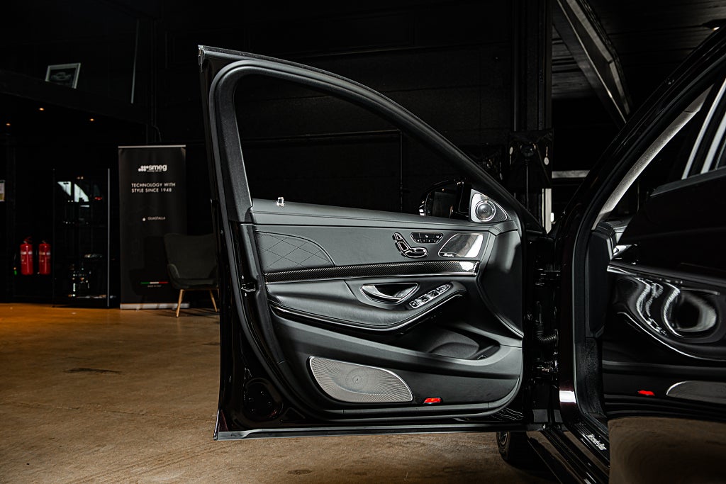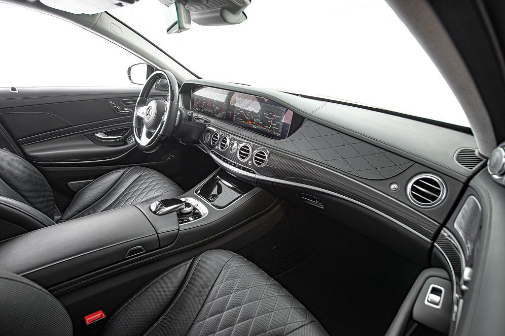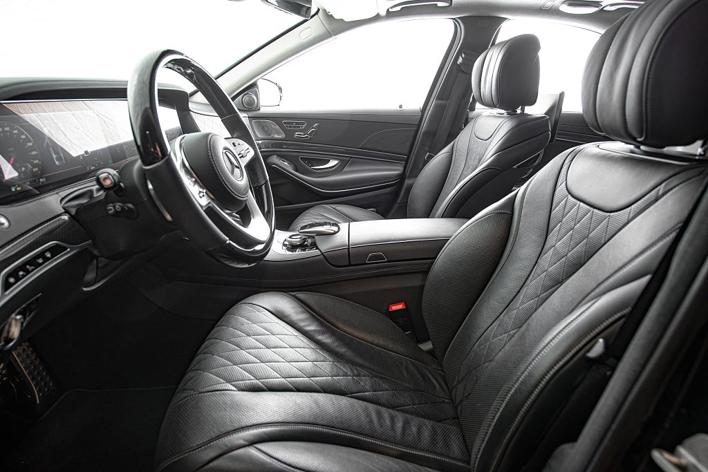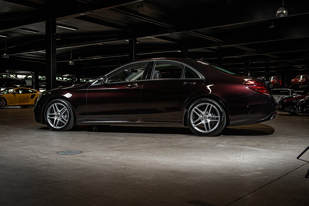 VI är stolta över att välkomna denna eminent utrustade W222 S 560 till vårt showroom. Sedan början av 70-talet så har Mercedes stora sedan varit ledstjärnan för hela motorindustrin när det gäller teknisk utveckling och prestanda. redan i slutet av 70-talet såldes dåtidens S-klass med ABS bromsar. på 90- och 00- talet var man först med att introducera röststyrning och radar kontrollerad farthållare. och redan på tidigt 90-tal så erbjöd man GPS i W126 karossen... baserat på kassettband men...ändå. Denna generationen W222 följde ledet av sina föregångare och är ett tekniskt underverk och fortfarande ett av de absolut främsta sätten att färdas långt i komfort. Detta exemplar är specificerat i en synnerligen ovanlig nyans av svart som Mercedes själva benämner Ruby Black. Färgen framstår i visst ljus nästan som mörkröd metallic. Det är en bil som gör skäl för uttrycket 'understated luxury' bättre än någon annan. För gemene man så är det bara en Mercedes sedan men även för denne så är det ett fordon med en fantastik närvaro. Den svart röda exteriören kompletteras av ett AMG-line paket som här ger bilen en nya fascia och en annorlunda sidokjol tillsammans med en uppsättning 19" AMG fälgar i dubbel-eker design. Den underbara exteriöra färgen får även en fin kontrast från detaljer i aluminium. Men det är insidan som så på så många S-klasser är den stora höjdpunkten. Du välkomnas till en svart helläder interiör i exclusive design och det blir snabbt tydligt att du nu sitter i en av motorindustrins absolut främsta interiörer. Det svarta lädret genomsyras av detaljer och reglage i aluminium. Allt känns genomtänkt och alla materialval är i världsklass. Förarmiljön är helt digital med två skärmar som dominerar instrumentbrädan. Bilen är rikligt utrustad med bekvämlighets funktioner för både färd och komfort. Så som paket för ställbara baksäten och skärmar i för infotainment. Ovan har man panoramataket som är inramat av ett innertak i alcantara. Utrustningslistan kan som sagt göras lång. Bilen är såld till den tyska marknaden från ny och kom till Sverige 2021 med 3900mil indikerat. Bilen har under hela sitt liv använt sparsamt och idag visar bilen strax över 4900mil. Den anmärksvärt låga mätarställningen visas tydligt i skicket på bilen. En unikt specificerad S 560 med allt och lite till i utrustningslistan i ett fantastiskt skick. För fler unika objekt besök gärna vår hemsida. www.garage-11.se