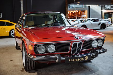 BMW 3.0 CS 1974. Svensksåld Röd metallic med Beige plyschklädsel. Träinredning. Här har ni urfadern till vad BMW är idag. Fin ägarhistorik med riktiga BMW-entusiaster. Välvårdad och otroligt fint skick. 16' Alpina-fälgar. Besök Garage-11.se för nyheter och fler unika objekt!
