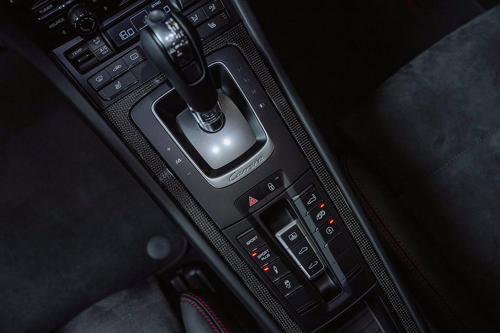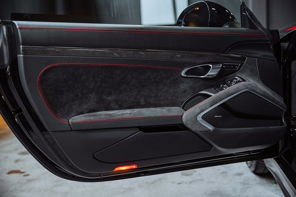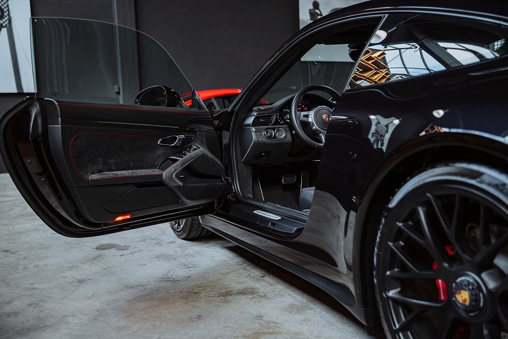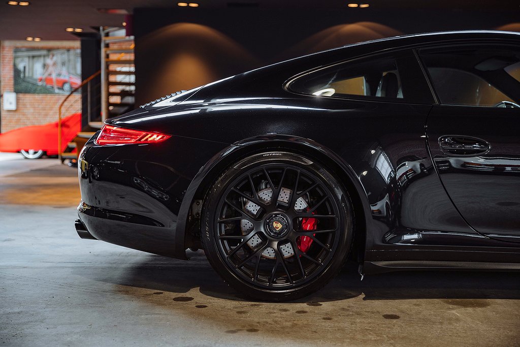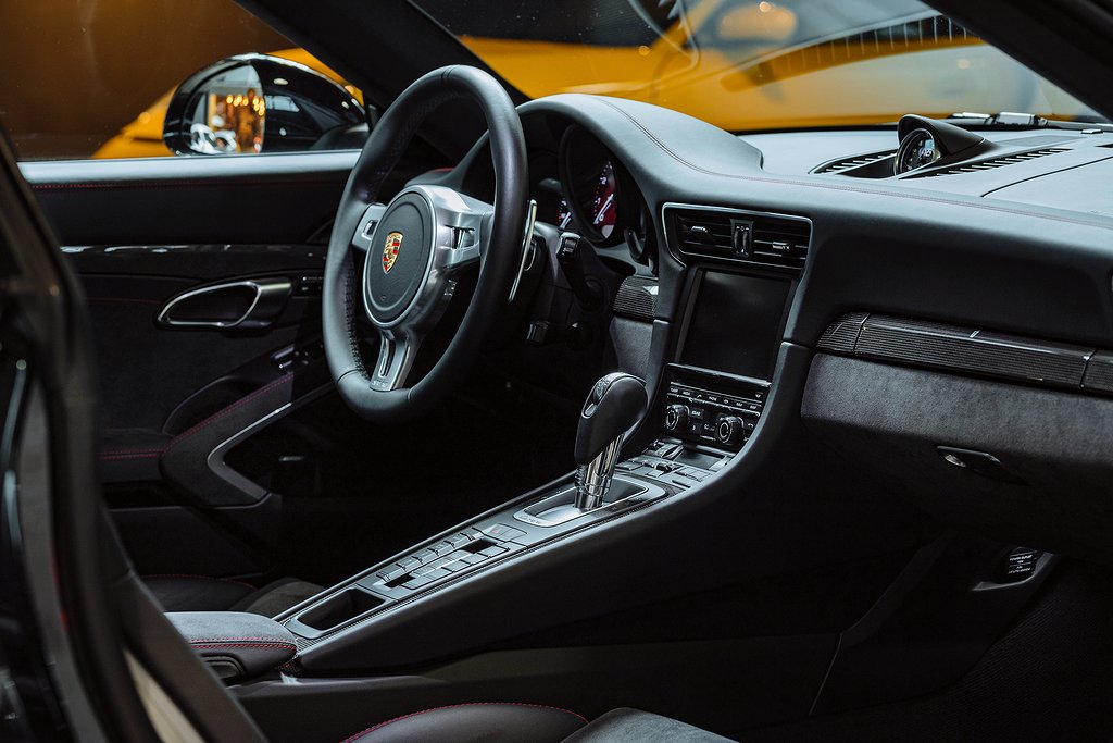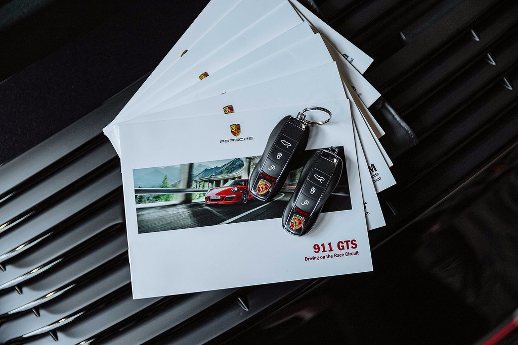 Porsche 911 Carrera 991 4 GTS. Svensksåld. Jet Black Metallic med Sportstolar i läder/alcantara med Carmineröda kontrastsömmar. (027 F) Instrument Dials in CarmineRed. (030 F) PASM Sport Suspension. (088 F) GTS Interior package. (250 F) Porsche Doppelkupplung (PDK). (454 F) Cruise Control. (567 F) Windscreen with TOP TINT. (602 F) Full LED headlights incl. Porsche Dynamic Light System Plus (PDLS Plus. (630 F) Light Design Package. (653 F) Electric glass slide/tilt sunroof. (680 F) BOSE Surround Sound System. (748 F) Electric folding exterior mirrors. (840 F) Sport Design steering wheel. (P07 F) Adaptive Sports seats Plus (18-way electric. (P9S F) Comfort Packag. (XUB F) Painted headlamp cleaning System cover. Bil i fantastiskt skick med mycket hög utrustningsnivå. Komplett med alla handlingar från ny. Besök www.garage-11.se för fler unika objekt!