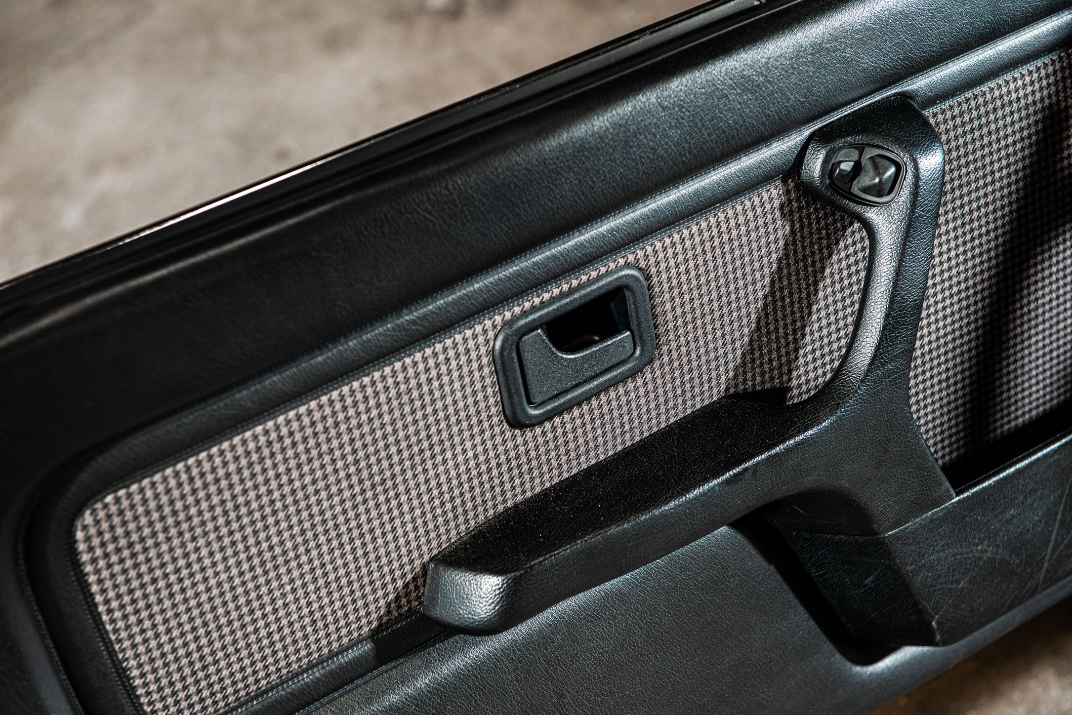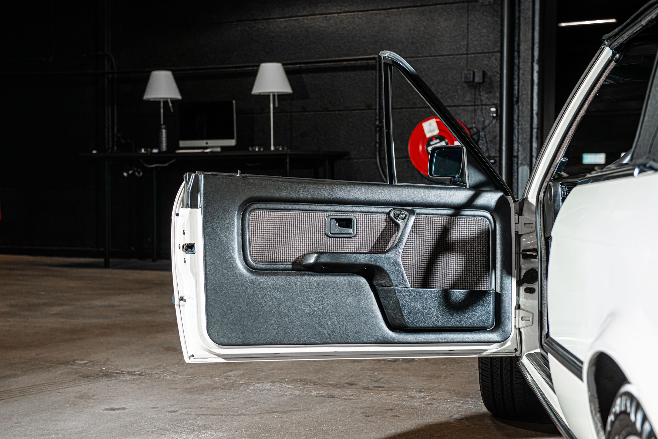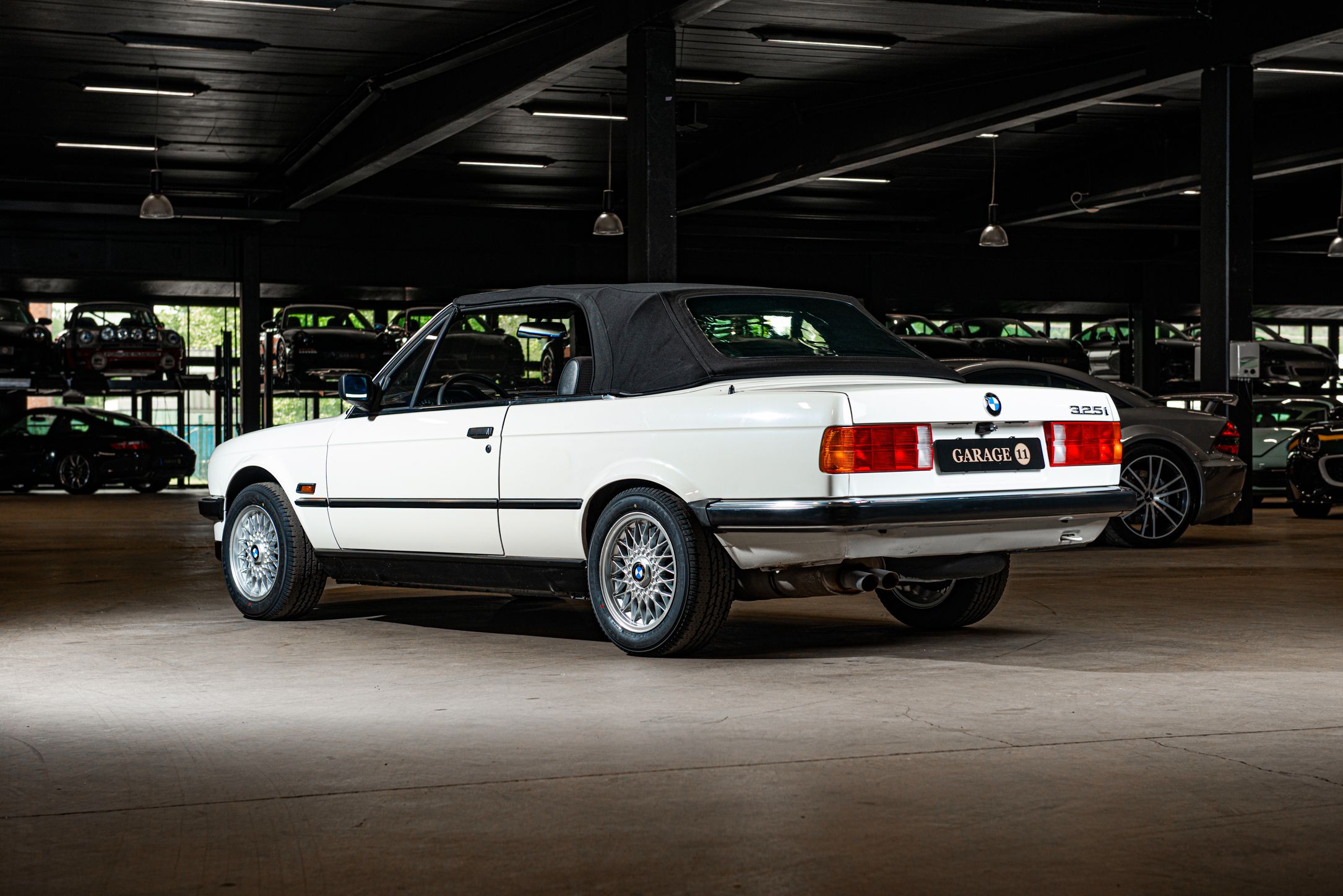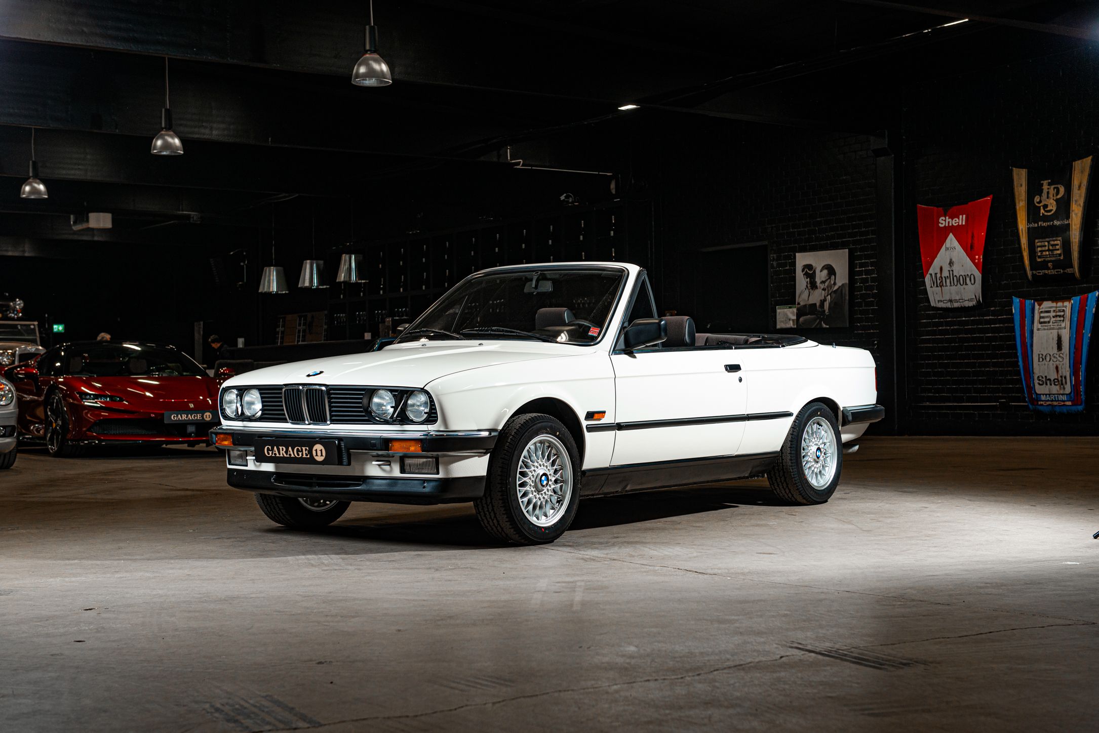 Exteriören är i klassiska och tidsenliga Alpinvit. En färg som framhäver E30's enkla formspråk och när det som här paras med klassiska 'kapsyl-fälgar' så blir det inte mycket bättre. Suffletten går i svart och är ny. Fortsätt bakåt och man möts av en klassiskt kantig 80-tals form med ett enkelt '325i' emblem över bakluckan. Det svarta taket fälls manuellt öppnar upp den eleganta tyg interiören till omvärlden. Insidan av en E30 var när det begav sig i framkant på modernt tänkande och funktionsmässigt svårslagen. Det vi idag associerar med en 3-serie återfinns inte här. Ingen CarPlay. Ingen adaptiv farthållare. Men däremot en körupplevelse som är svår att mäta sig med. Framför föraren en enkle tre ekrad ratt med M färgerna i botten och strax bakom ett enkelt mätarhus.